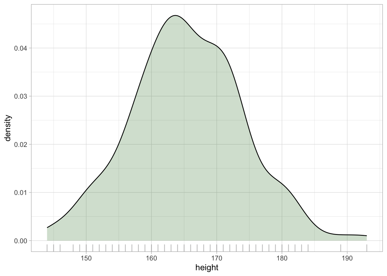 \[ \begin{align} h & \sim Gaussian(\mu, \sigma)\\ \mu & = ...\\ \sigma & = ... \end{align} \]